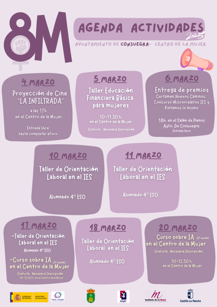 #8MARZO. El Centro de la Mujer de Consuegra presenta las actividades programadas para conmemorar y visibilizar el Día Internacional de las Mujeres 2025.