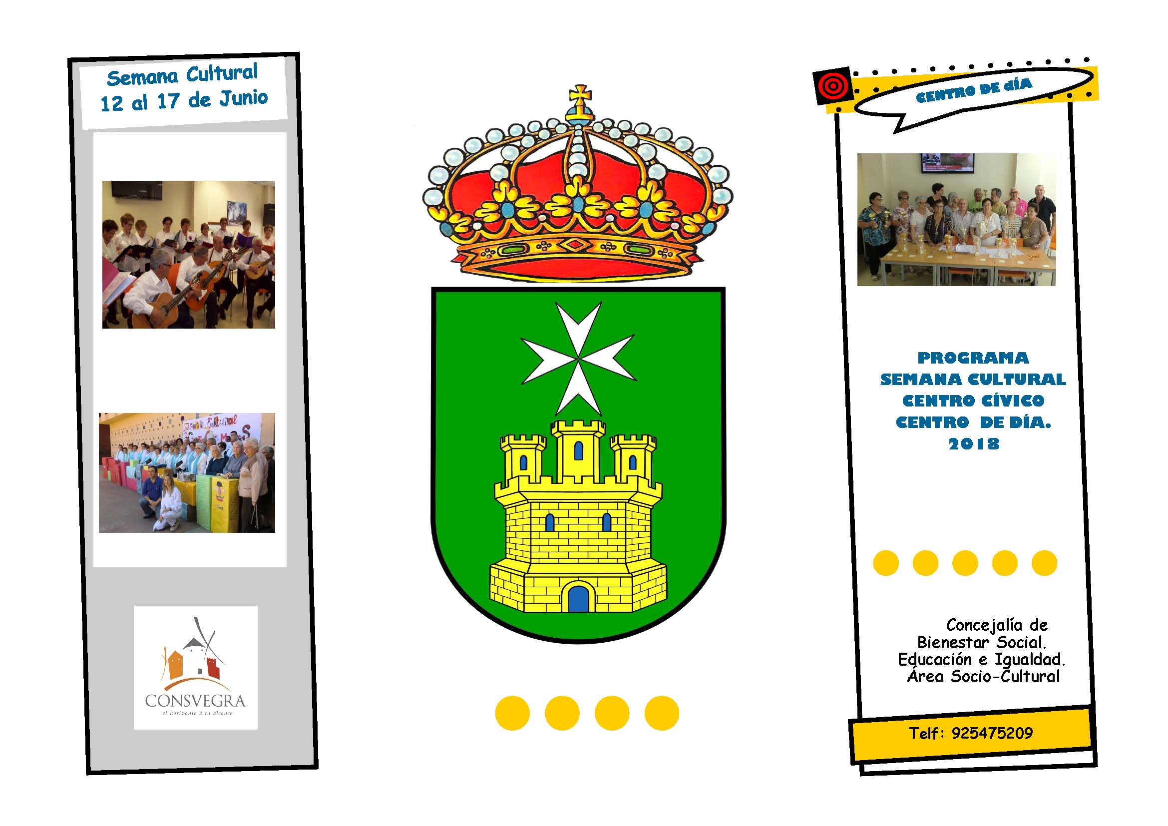 La Concejalía de Bienestar Social, Educación e Igualdad del Ayuntamiento de Consuegra, organiza a través del Área Sociocultural los siguientes eventos con motivo de la SEMANA CULTURAL DEL CENTRO DE DÍA, del 12 al 17 de junio: