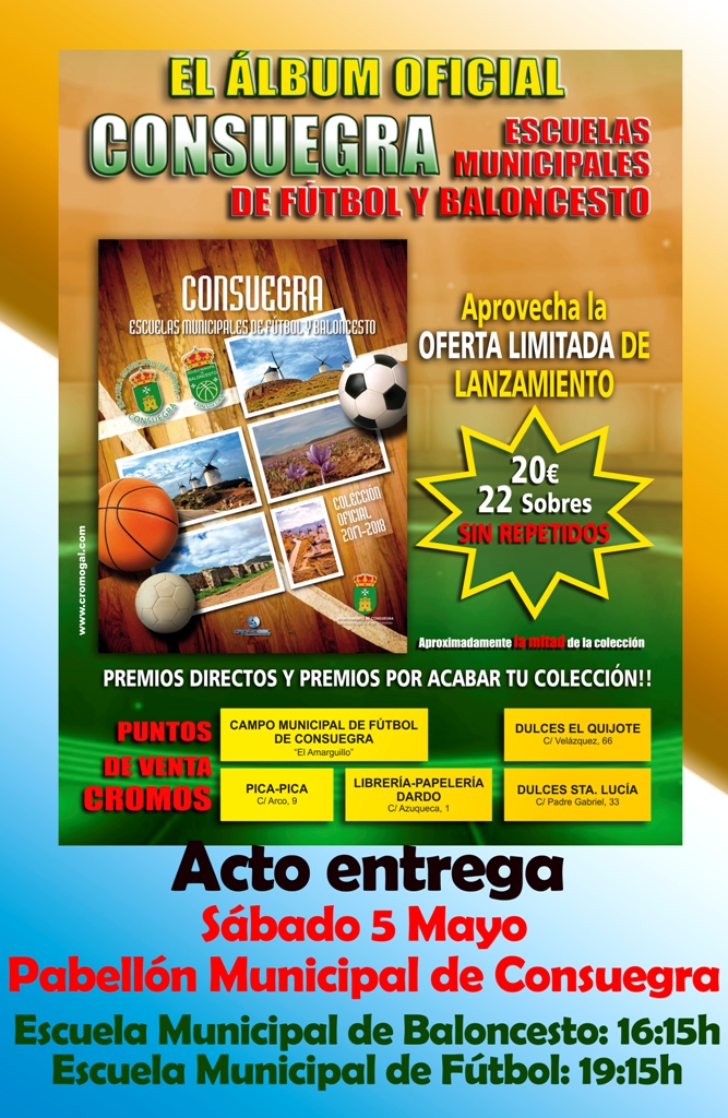 EL Ayuntamiento de Consuegra, lanza álbum de cromos para los niños de sus Escuelas Municipales de Fútbol y Baloncesto.
