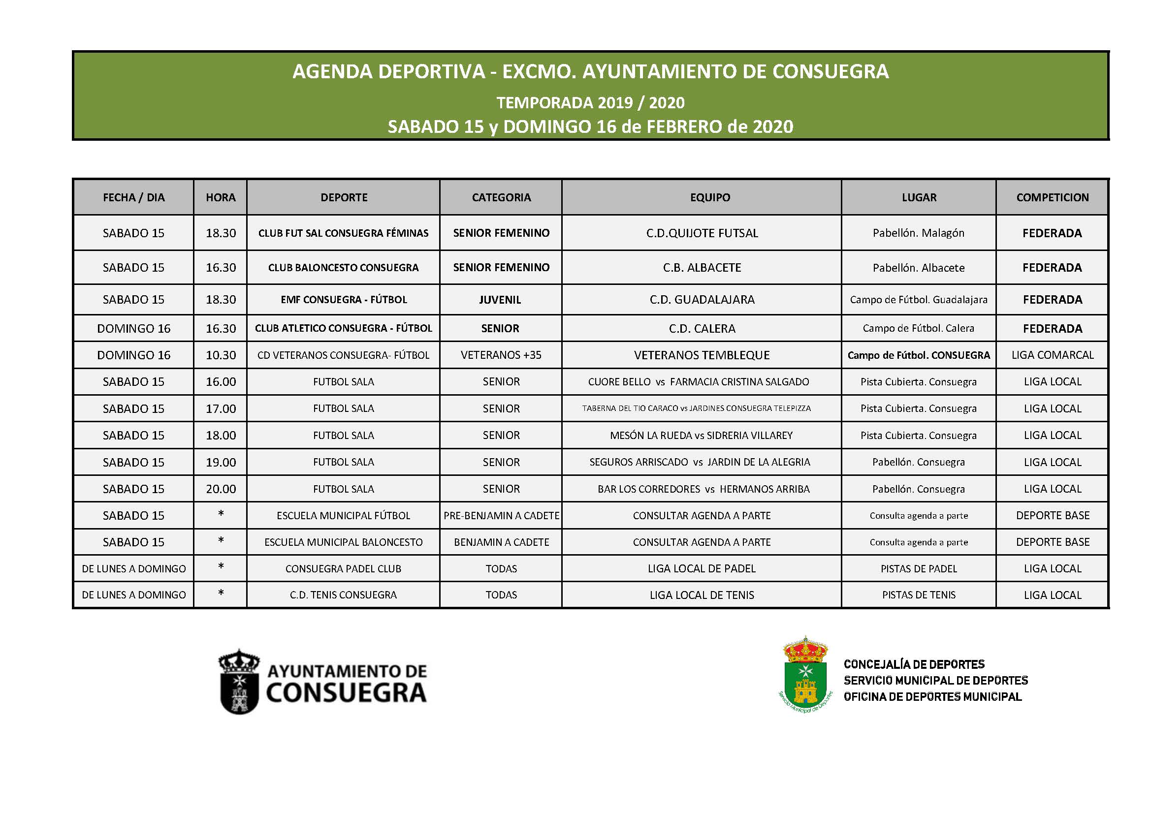 AGENDA DEPORTIVA TEMPORADA 2019/2020