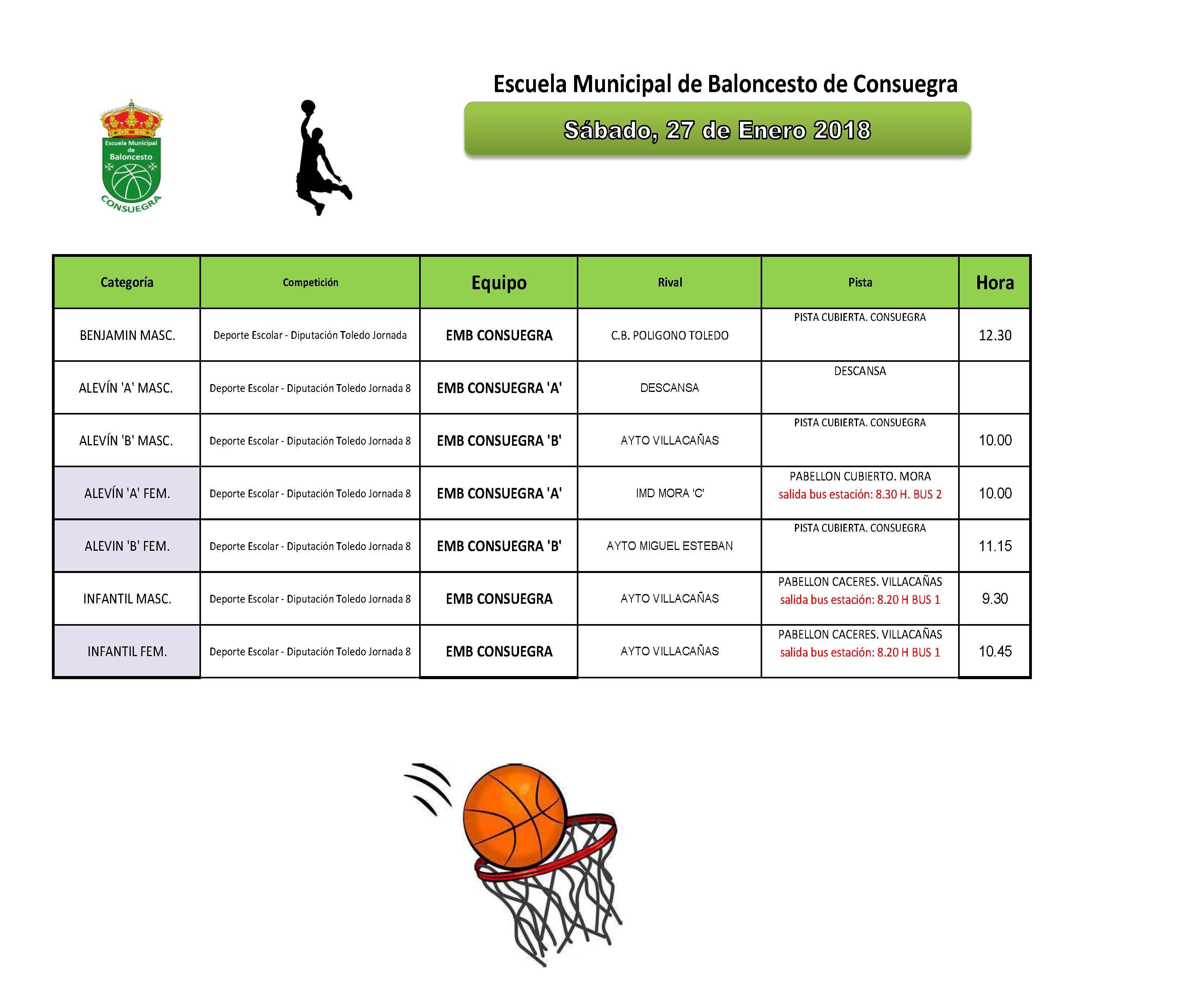 Agenda Deportiva Escuela de Baloncesto 27/01/2018