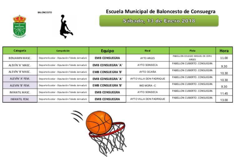Programación de la Escuela Municipal de Baloncesto, correspondiente a la jornada del 13 de enero. Temporada 2017/2018.