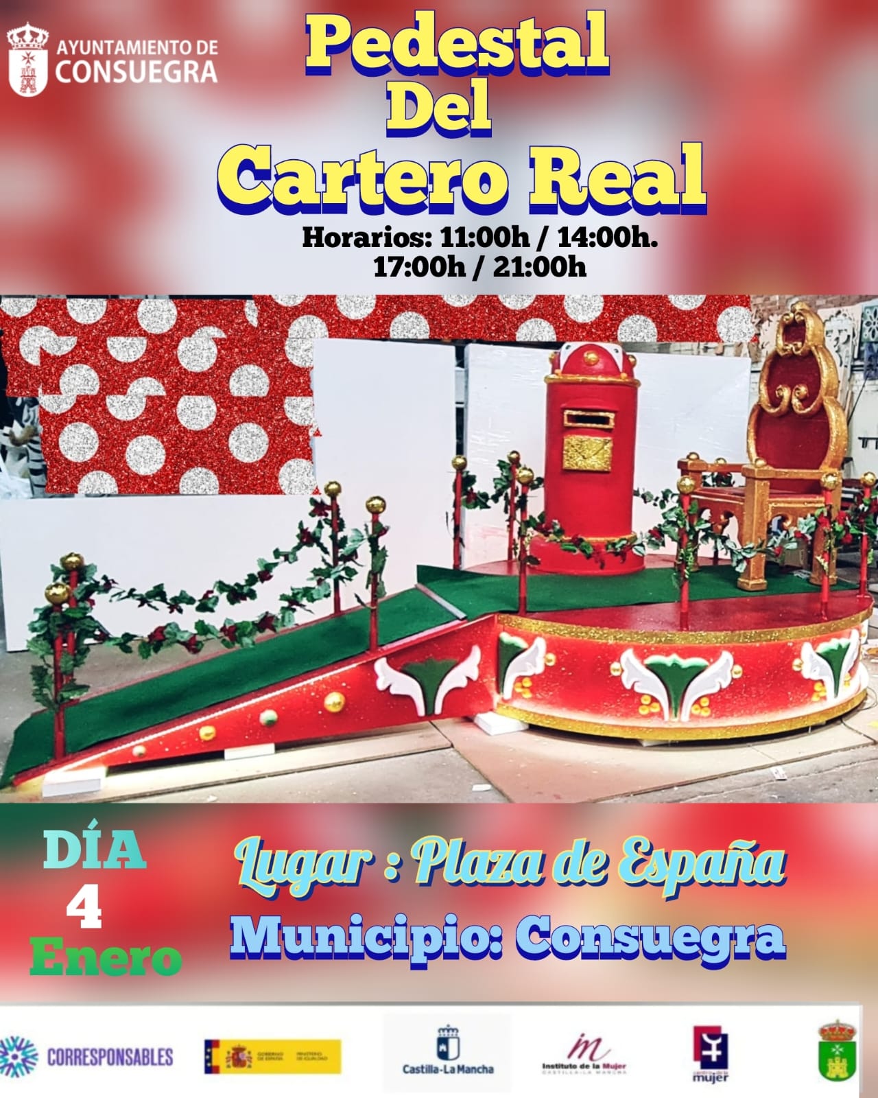 El Buzón de los Reyes Magos estará a disposición de todos los niños y niñas de Consuegra el día 4 de enero en Plaza España que se instalará el Pedestal del Cartero Real y donde podrán depositar sus cartas y deseos.