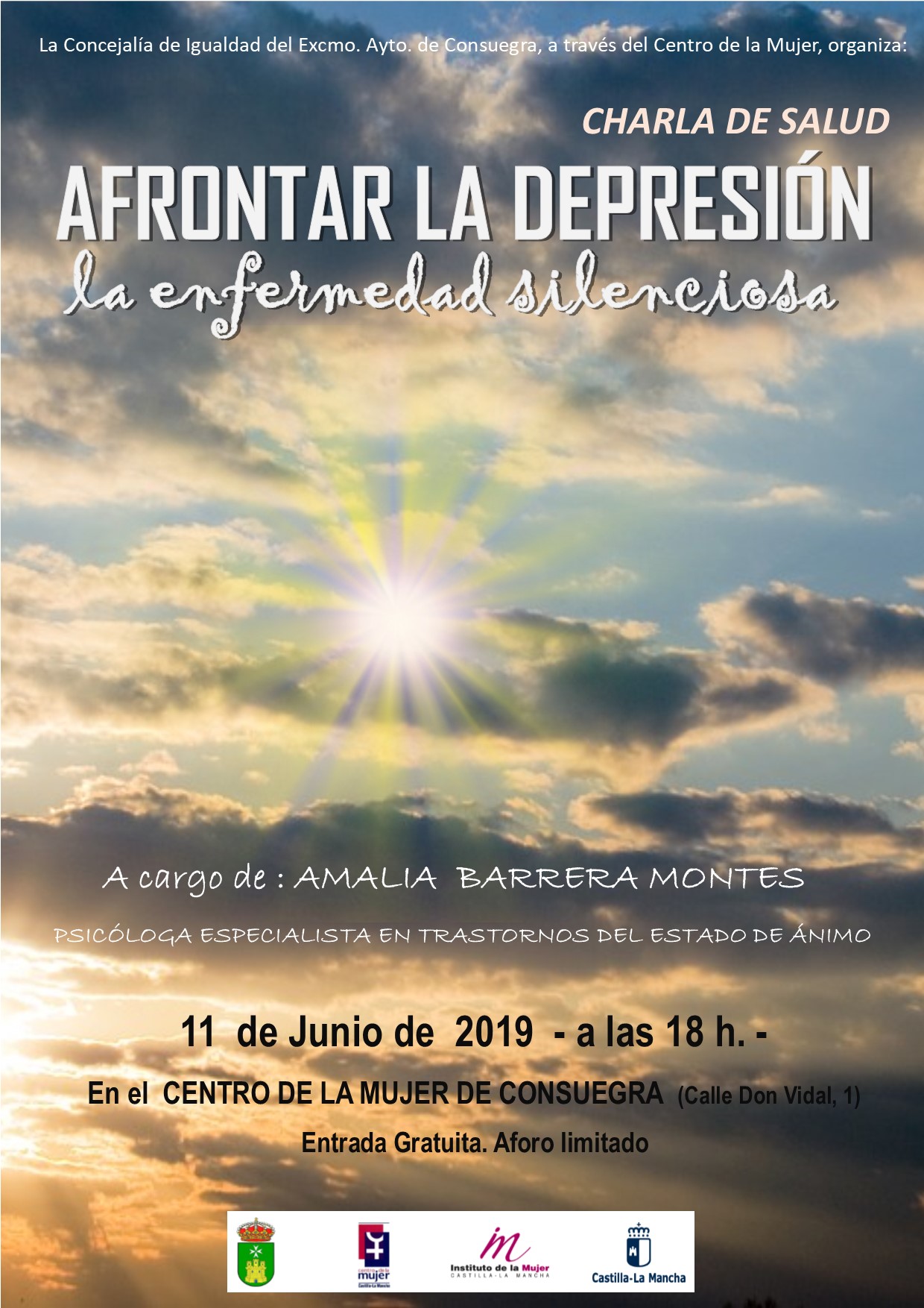 La Concejalía de Igualdad del Excmo. Ayuntamiento de Consuegra, a través del Centro de la Mujer, organiza el próximo martes 11 de Junio, a las 18:00h, en la sala multiusos de su sede (C/ Don Vidal, 1), la charla «Afrontar la depresión. La enfermedad silenciosa», a cargo de la psicóloga especialista Amalia Barrera Montes, para contarnos aspectos de este trastorno del estado de ánimo, y consejos que ayuden a prevenirla y combatirla.