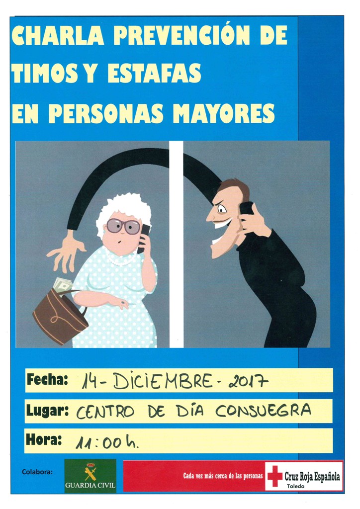 El Área Sociocultural del Ayuntamiento de Consuegra organiza la charla «Prevención de timos y estafas en personas mayores», el Jueves 14 de diciembre, a las 11:00 horas, en Centro de Día.