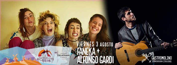 Conciertos gratuítos entre molinos de viento. viernes 3 de agosto de 2018, a partir de las 20:00h Faneka & Alfonso Gardi en «Atardeceres en vivo con Calatrava» En Gastromolino