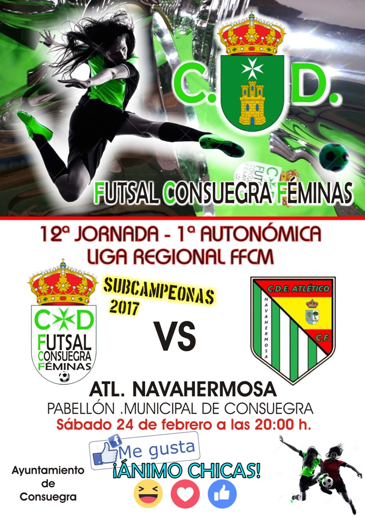 12ª Jornada – 1ª Autonómica. Liga Regional de FFCM FÚTSAL FEMINAS CONSUEGRA vs ATL. NAVAHERMOSA Sábado 24 de FEBRERO de 2018, 20:00 h. Pabellón Municipal de Consuegra Entrada: 1,50 €