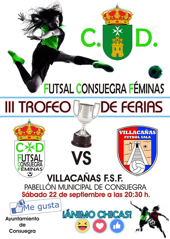 SABADO 22 DE SEPTIEMBRE DE 2018 20:30 h. En el Pabellón Municipal, FÚTBOL SALA FEMENINO, TROFEO DE FERIA 2018, categoría SÉNIOR FEMENINO entre los equipos: FÉMINAS CONSUEGRA vs