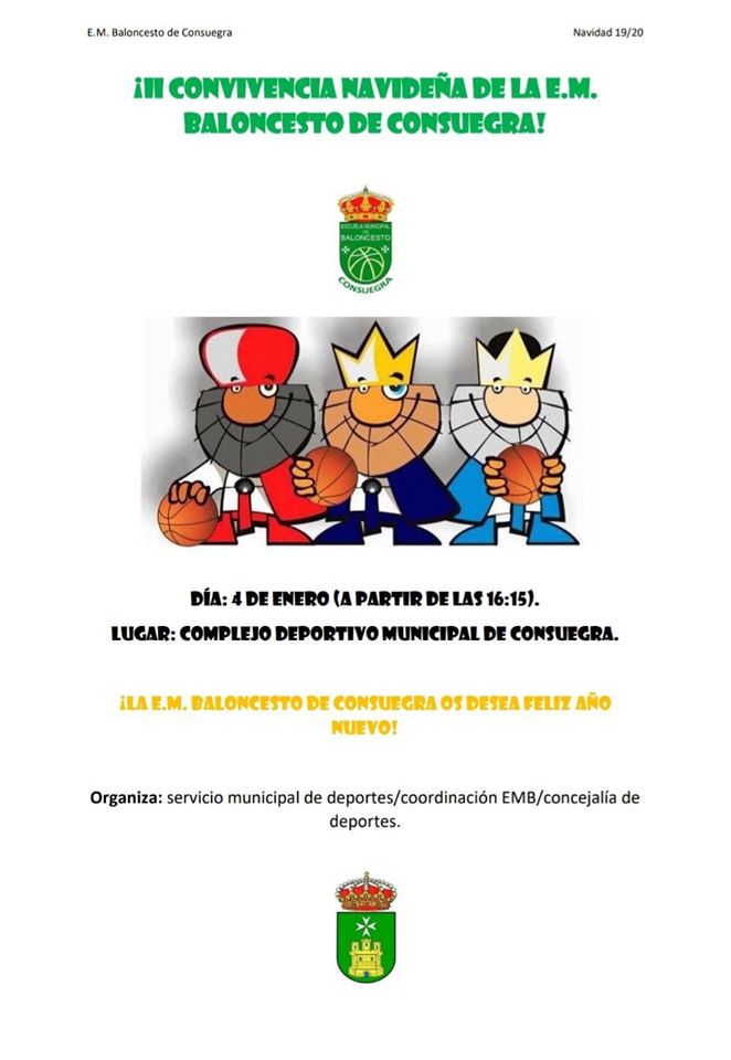 II Concentración navideña de la Escuela Municipal de Baloncesto con los Equipos de Mora y Sonseca. Mañana 4 de enero, a las 16:15h en Complejo Deportivo de Consuegra. Acto oficial de presentación