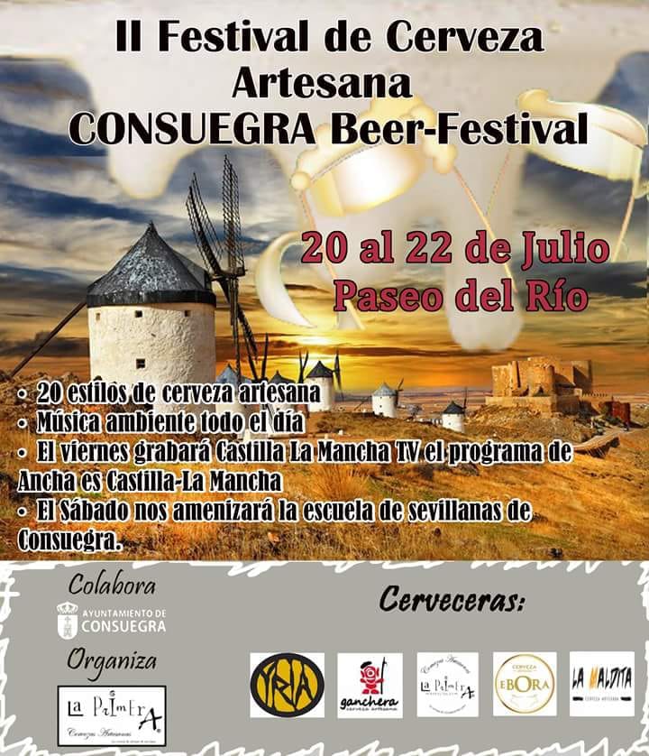 El Ayuntamiento de Consuegra, a través del Área Municipal de Festejos, presenta el II FESTIVAL DE LA CERVEZA ARTESANA, del 20 al 22 de julio, en el Paseo del Rio. 20