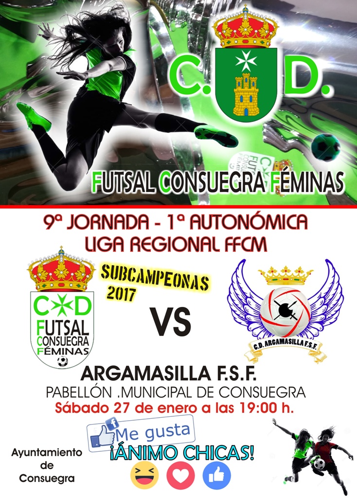 9ª Jornada – 1ª Autonómica. Liga Regional de FFCM FÚTSAL FEMINAS CONSUEGRA vs C.D. ARGAMASILLA F.S. Sábado 27 de enero de 2018, 19:00 h. Pabellón Municipal de Consuegra