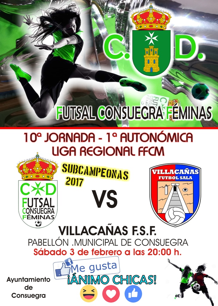 10ª Jornada – 1ª Autonómica. Liga Regional de FFCM FÚTSAL FEMINAS CONSUEGRA vs VILLACAÑAS F.S.F Sábado 3 de febrero de 2018, 20:00 h. Pabellón Municipal de Consuegra Entrada: 1,50 € en