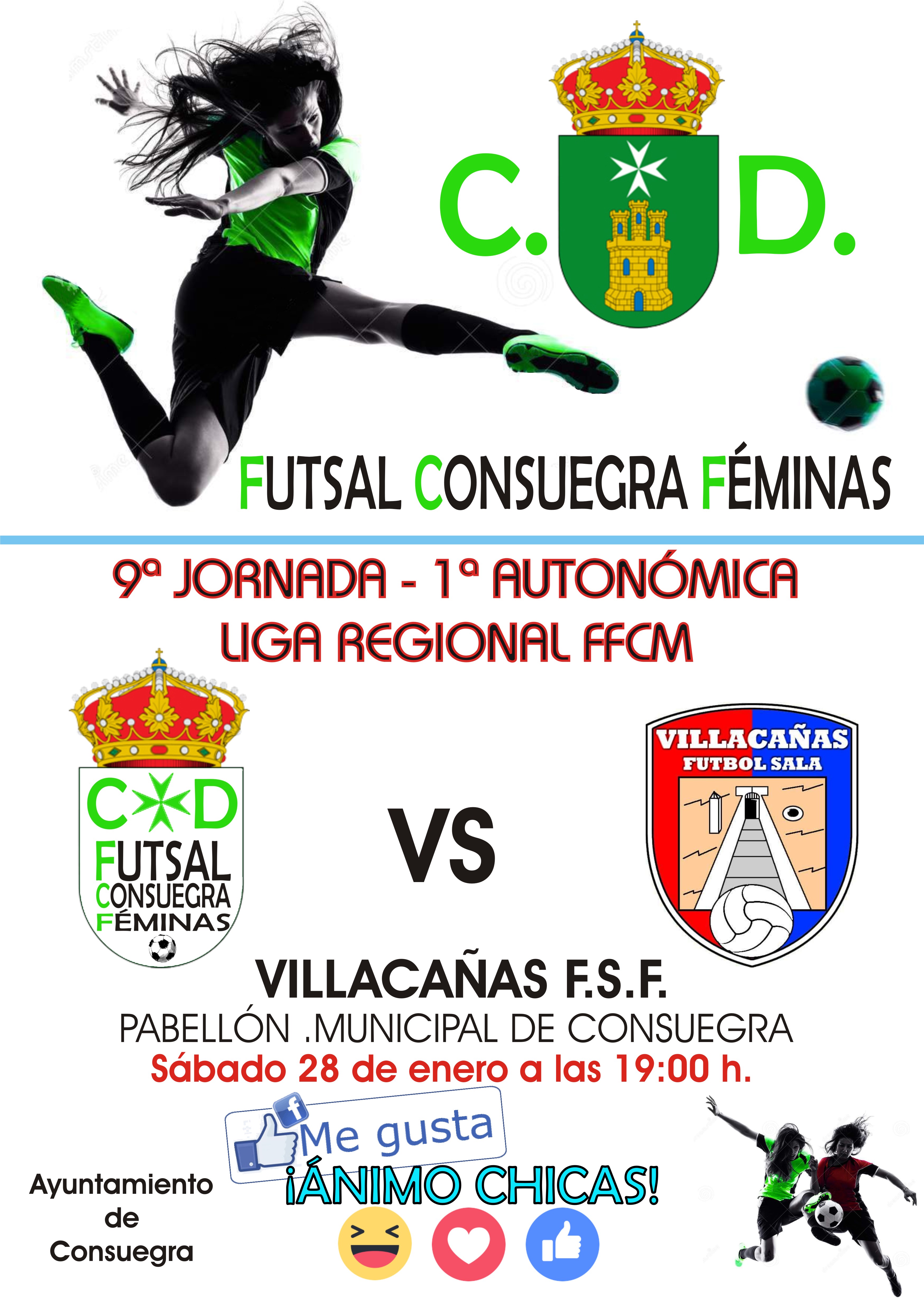 Fútsal Consuegra Féminas vs Villacañas F.S.F Sábado, 28 de enero. a las 19:00 horas. Vísitanos al facebook del CD Futsal Féminas Consuegra