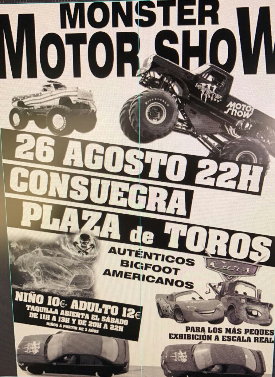 El próxímo sábado 26 de agosto a las 22:oo horas en la Plaza de Toros de Consuegra, tendrá lugar: MONSTER MOTOR SHOW Auténticos bigfoot americanos /