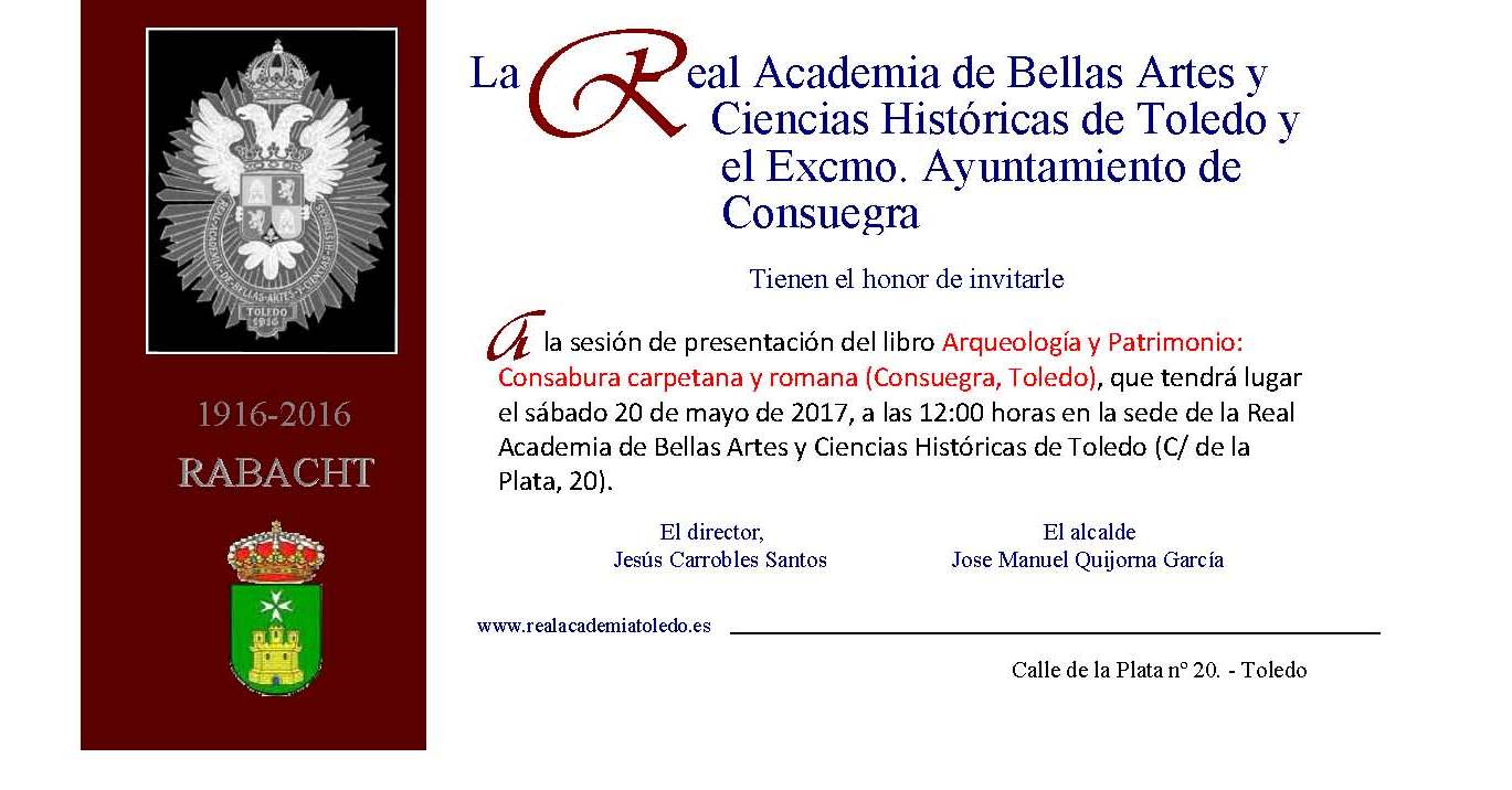 El próximo sábado 20 de mayo, a las 12:00 horas tendrá lugar en la sede de la Real Academia de Bellas Artes y ciencias Históricas de Toledo, la presentación del libro Arqueología y Patrimonio: Consabura carpetana y romana»…+ INFO