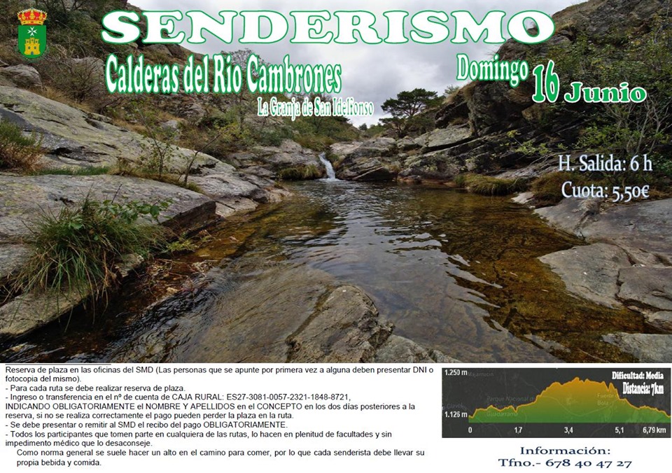 SENDERISMO CONSUEGRA 2019 Domingo 16 de junio Ruta «Calderas del Rio Cambrones» (La Granja de San Ildefonso) Hora de salida: 6.00h. Cuota: 5,5€ (Ingreso en el