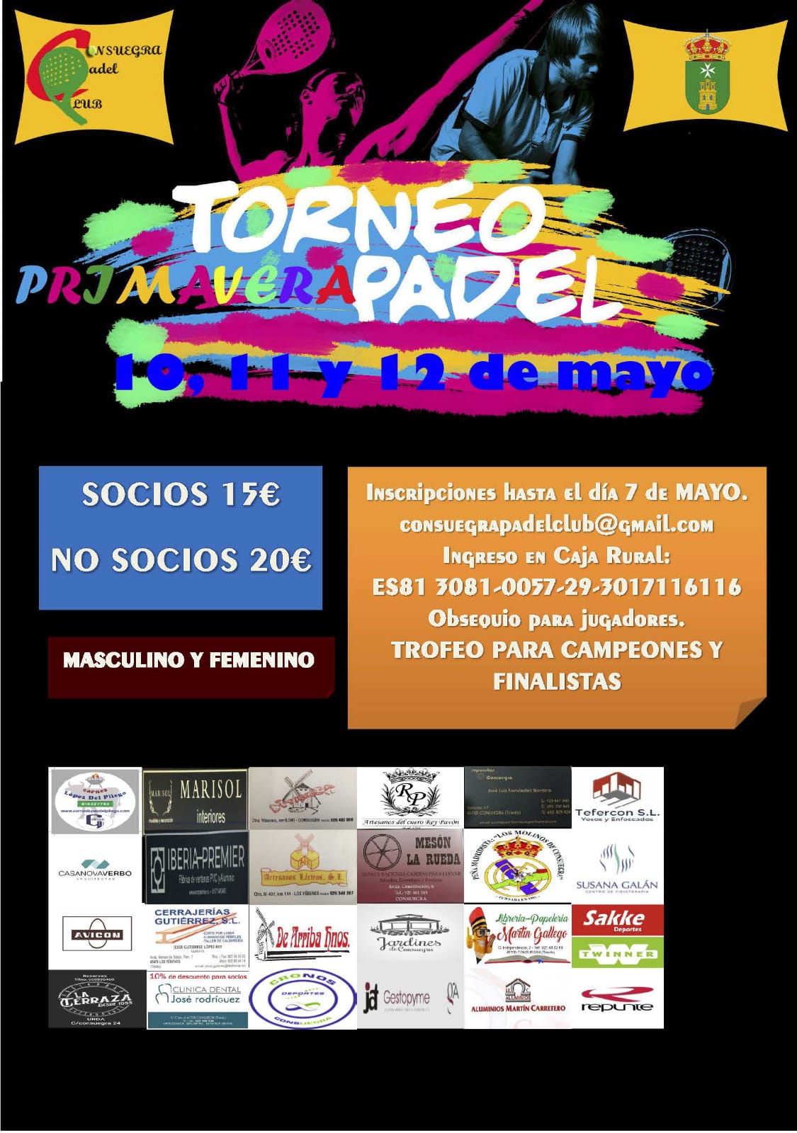 CONSUEGRA PADEL CLUB, junto a la Concejalía de Deportes del Ayuntamiento de Consuegra, organiza TORNEO DE PÁDEL PRIMAVERA 2019