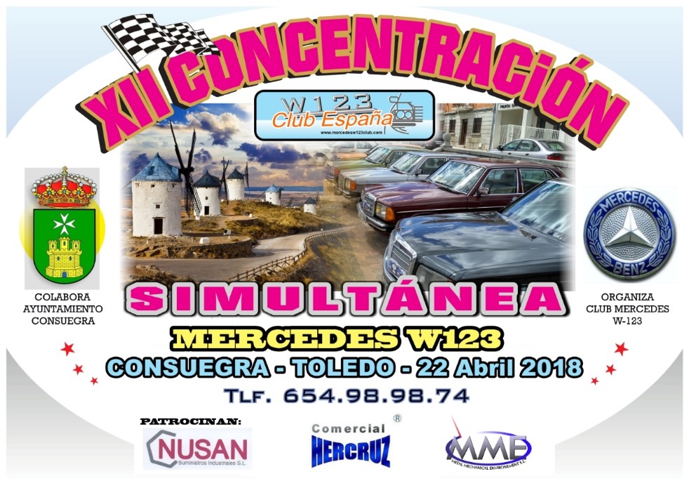 El Club Mercedes W23 organiza XII CONCENTRACIÓN SIMULTÁNEA, el próximo 22 de ABRIL en Consuegra. Información: 654 98 98 74 El Club Mercedes W-123 organiza XII CONCENTRACIÓN SIMULTÁNEA, el próximo 22 de