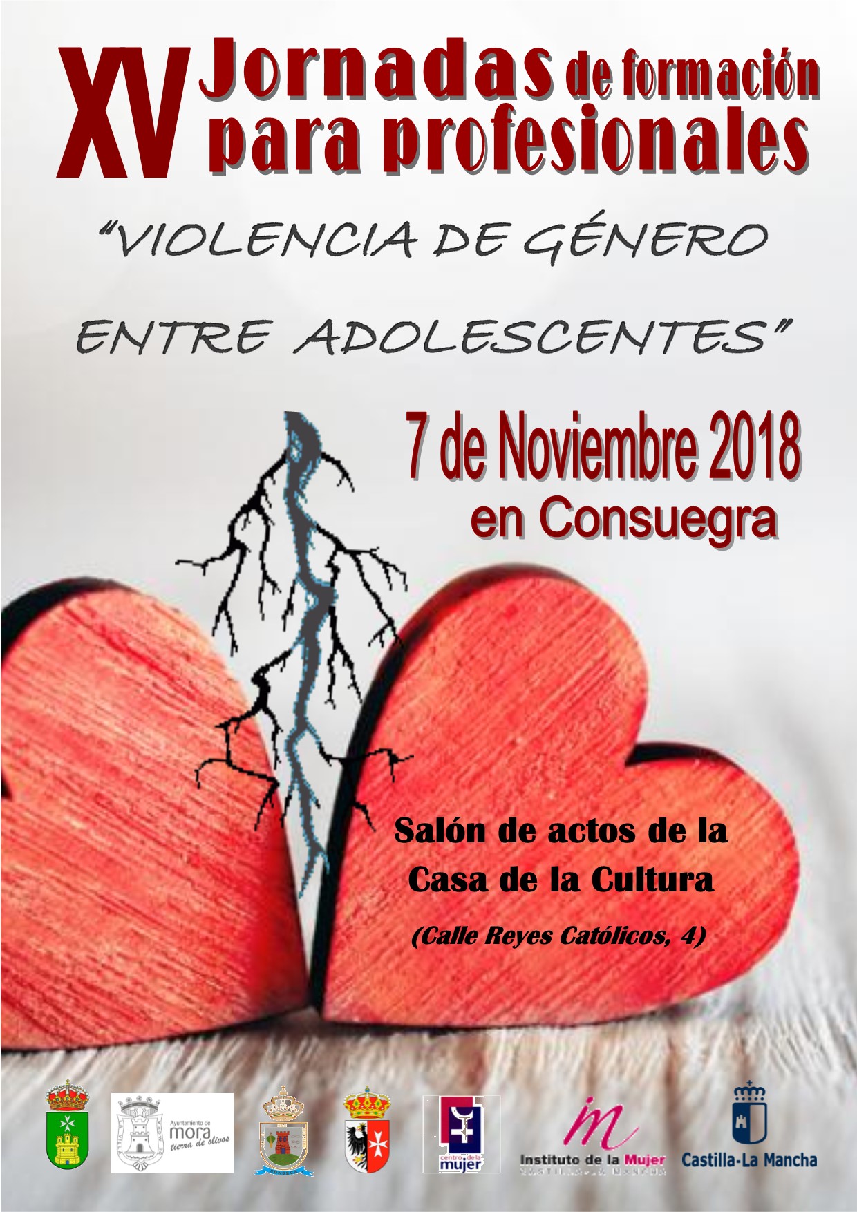 Con motivo de la conmemoración del 25 de Noviembre, “Día Internacional contra la Violencia hacia la Mujer”, los Centros de la Mujer de las localidades de Mora, Consuegra, Sonseca y Los Yébenes, organizan la XV Jornada de Formación para Profesionales: “Violencia de Género entre adolescentes”. Tendrá lugar el próximo 7 de noviembre de 2018 en el Salón de actos de la Casa de la Cultura de Consuegra (Toledo).