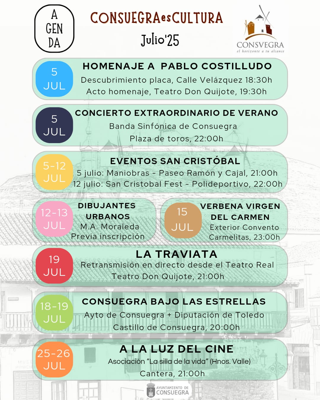 Agenda Cultural Consuegra. Julio 2025