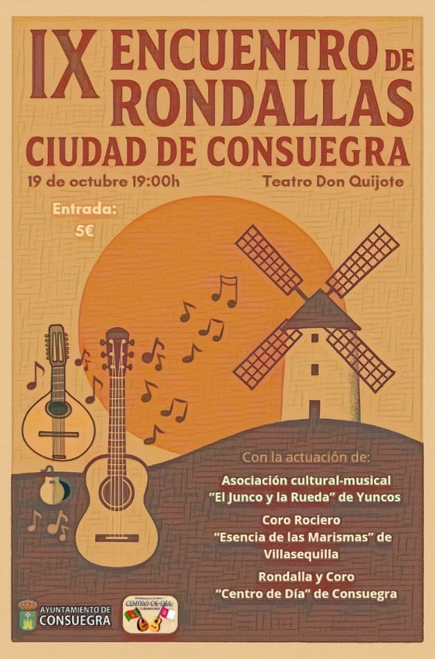 Domingo 19 – 19:00h, en Teatro Don Quijote, IX ENCUENTRO DE RONDALLAS «Ciudad de Consuegra 2025»
