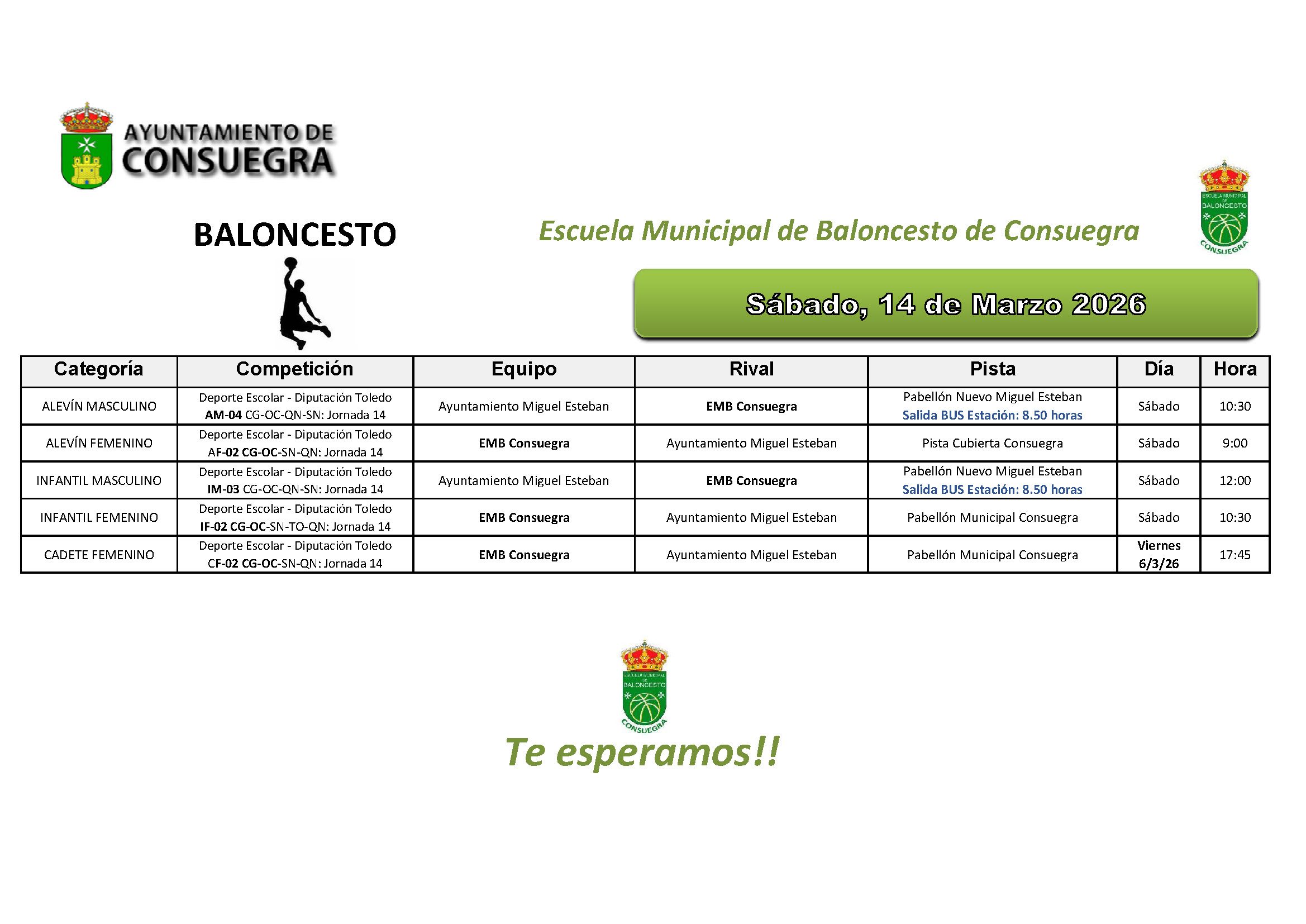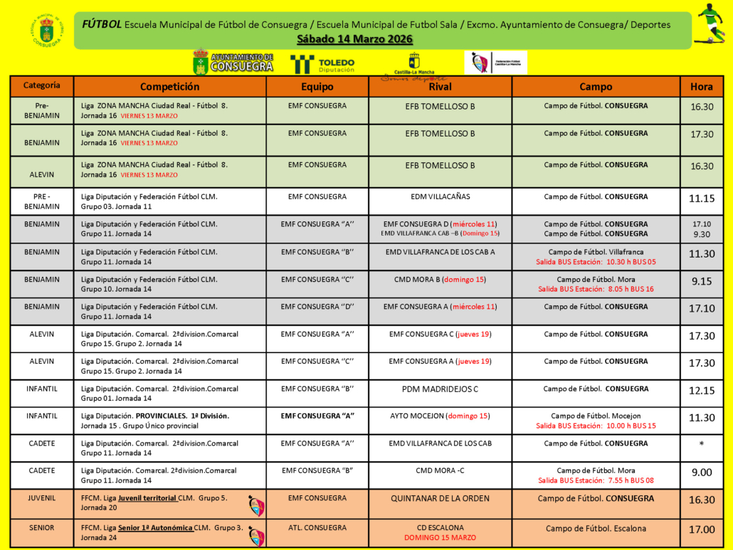 Agenda Deportiva fin de semana (14 de marzo 2026)
