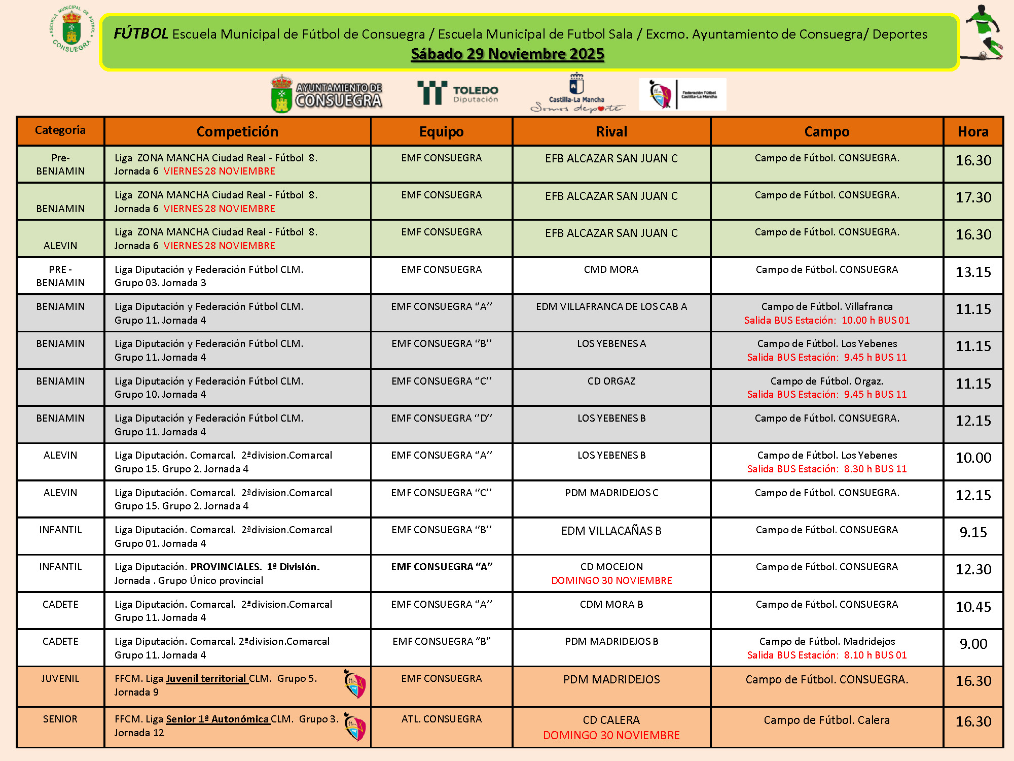 Agenda Deportiva fin de semana (29 y 30 de noviembre de 2025)