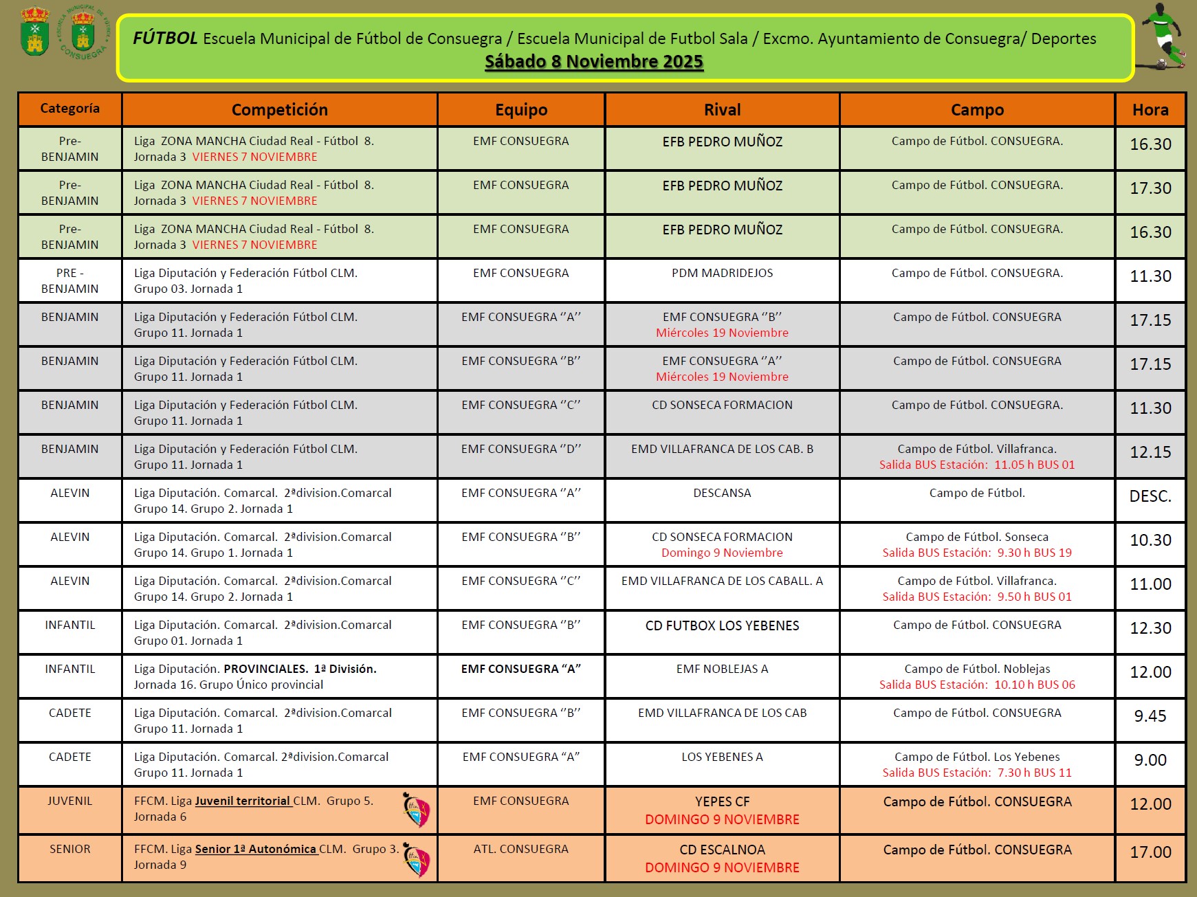 Agenda Deportiva fin de semana (8 y 9 de noviembre de 2025)