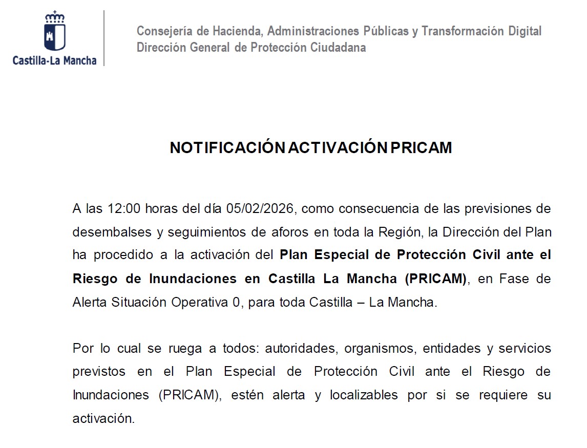La dirección del METEOCAM, decreta la activación de este Plan tras valorar los avisos de nivel amarillo por fuertes vientos, que ha elaborado la Agencia Estatal de Meteorología (AEMET) en diferentes zonas de Castilla-La Mancha, con rachas de viento entre 70 y 80 kilómetros por hora.