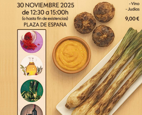 En otro lugares los llaman «calsots», aquí en La Mancha los conocemos como cebolletas. Si os apetece tomar unas cebolletas con salsa romesco, una buenas judias y degustar queso y vino, esta es vuestra fiesta.