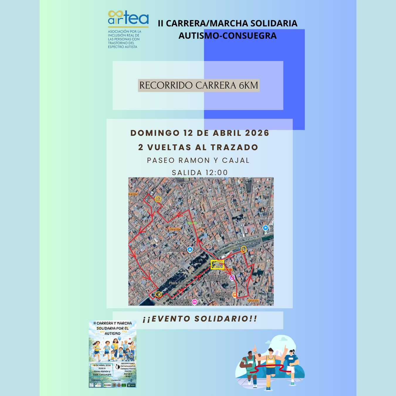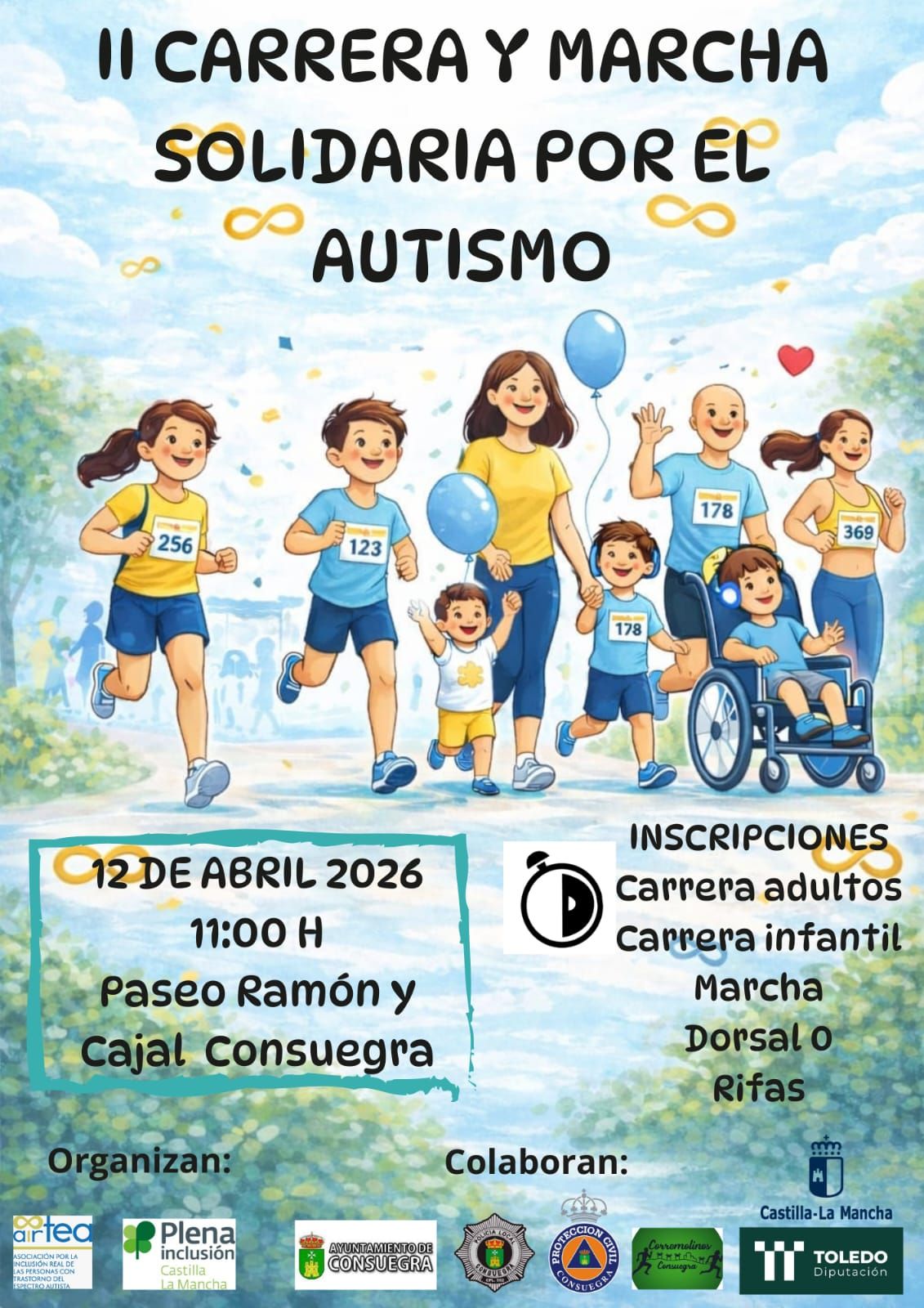 La Asociación para la inclusión real de personas con Trastorno del Espectro Autista (AIRTEA) con la colaboración del Ayuntamiento de Consuegra, organiza la segunda edición de la carrera por el AUTISMO.