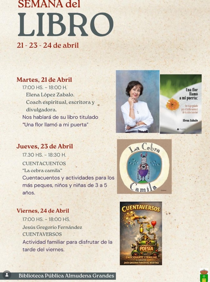 Con motivo del Día del Libro #23abril2026, informamos de los actos programados del 21 al 24 de abril: