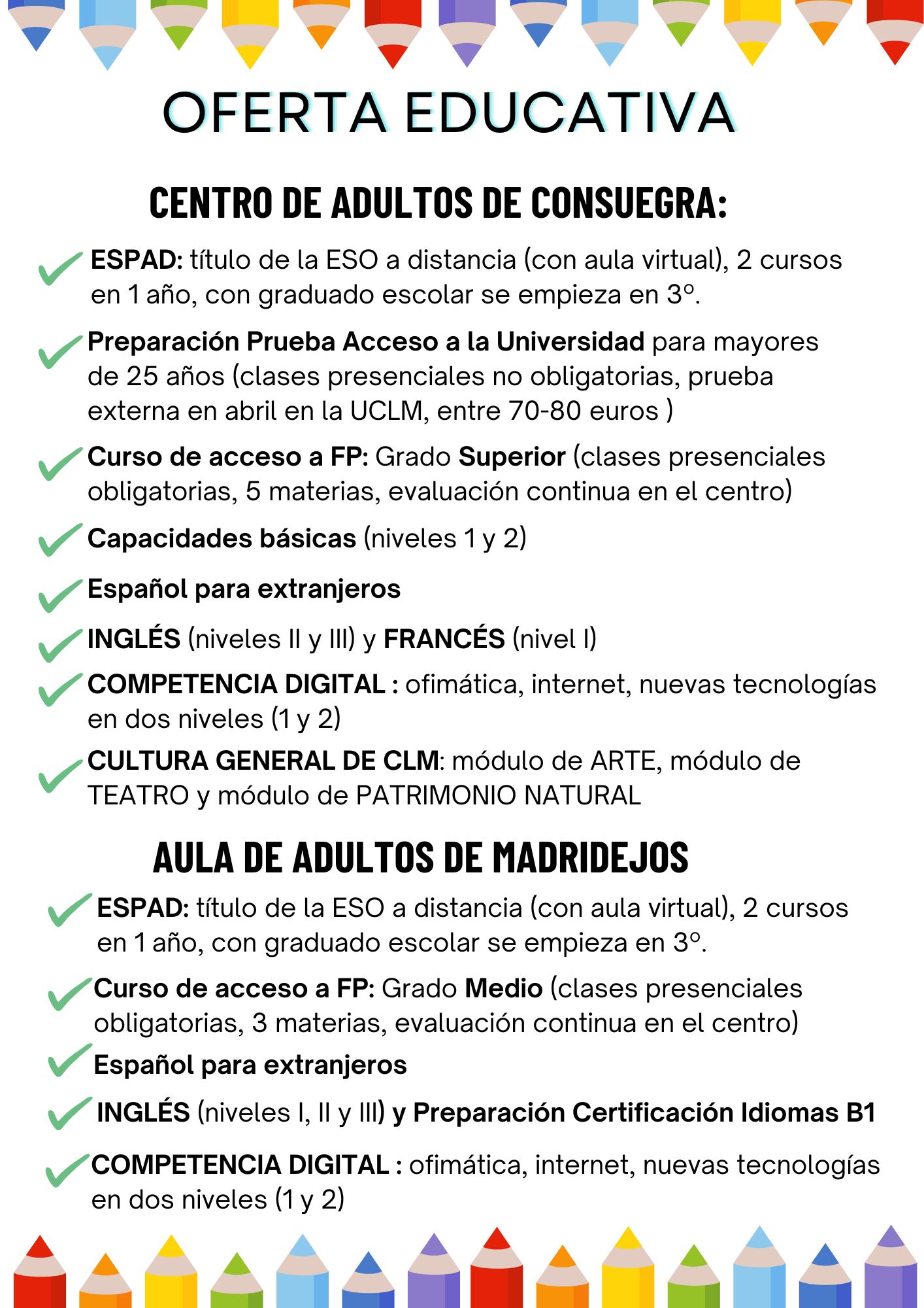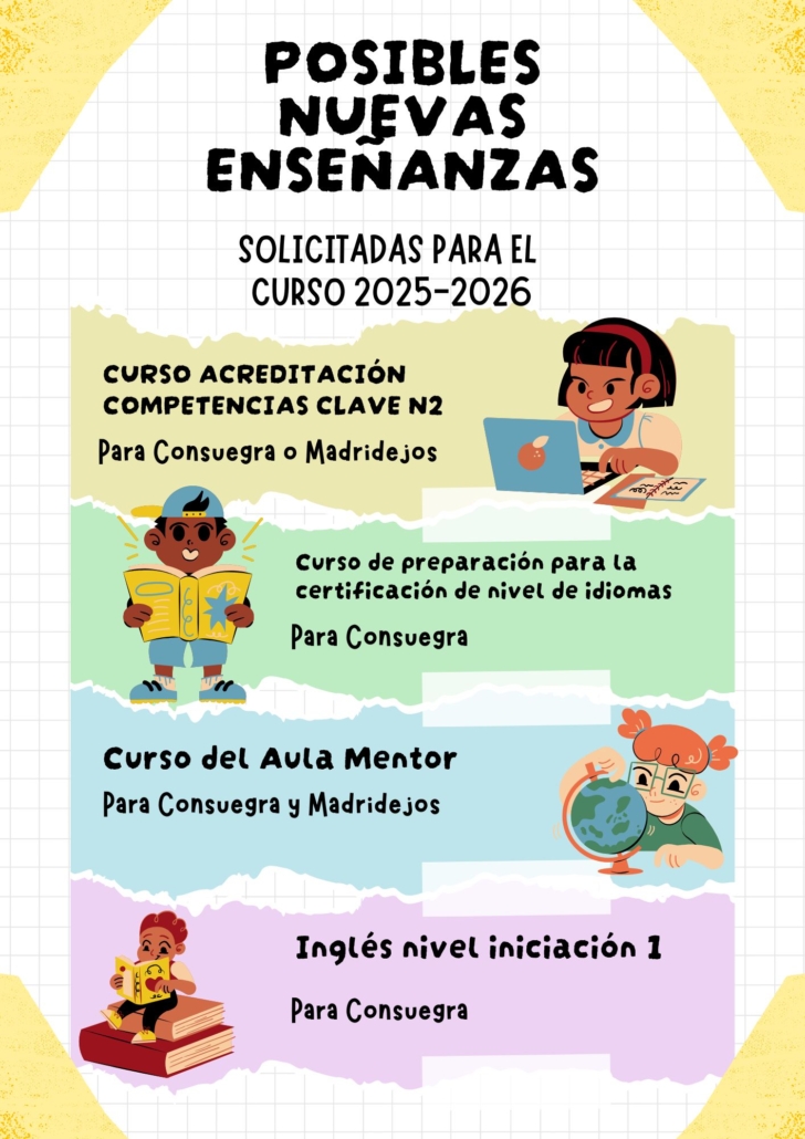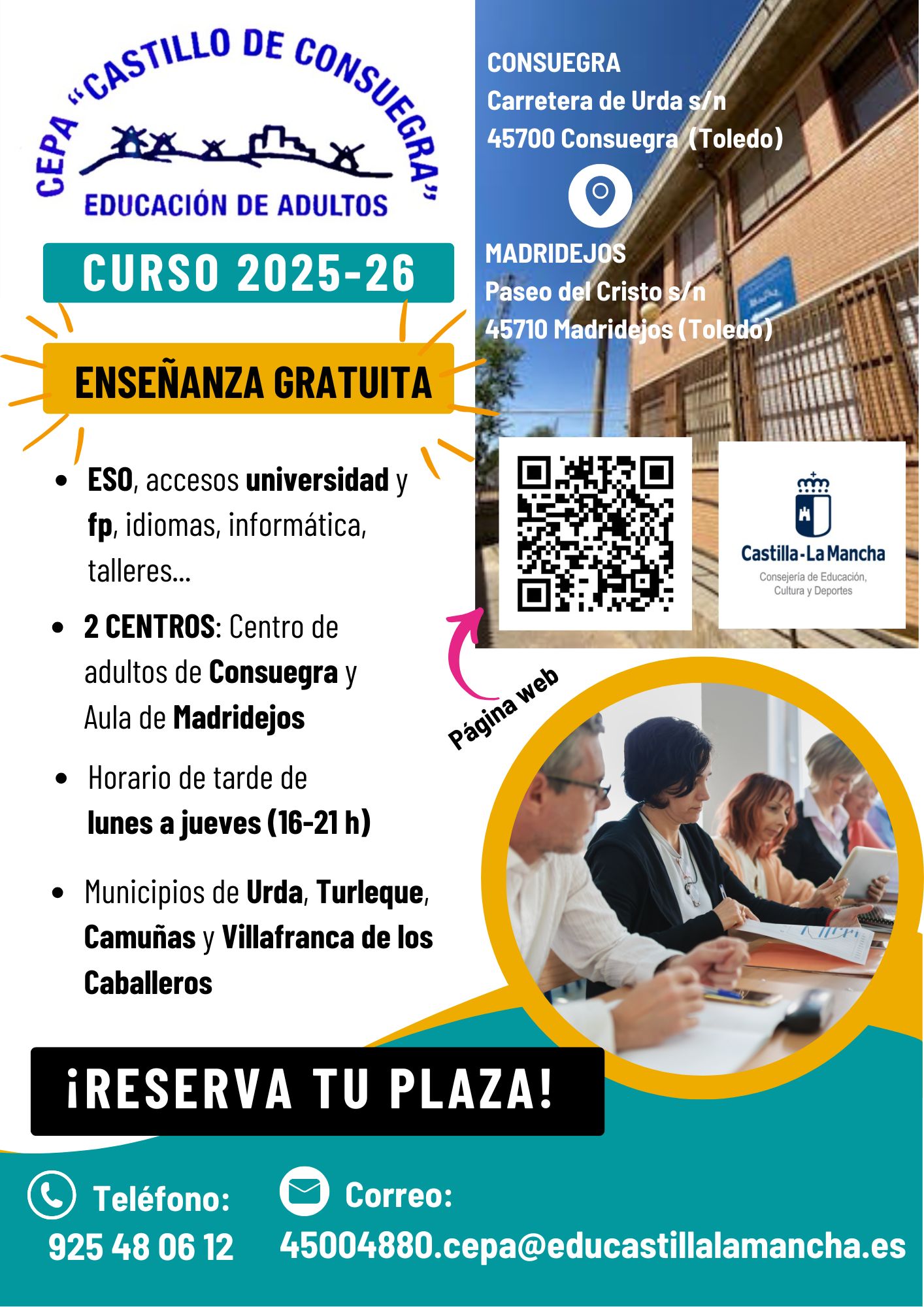Educación para personas adultas. Oferta educativa y formativa de CEPA Consuegra. Curso 2025/2026