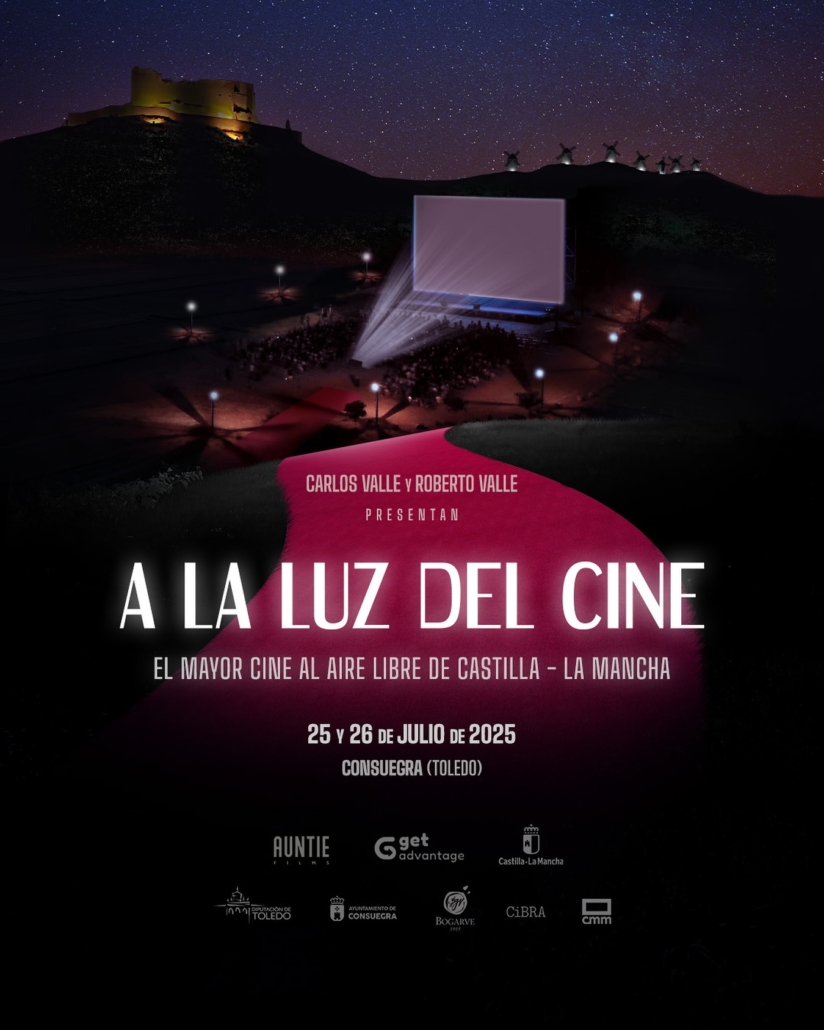 Vuelve la magia del cine a Consuegra. A LA LUZ DEL CINE es una experiencia cinematográfica que tendrá lugar junto a los molinos de viento de Consuegra (Toledo) los días 25 y 26 de julio.