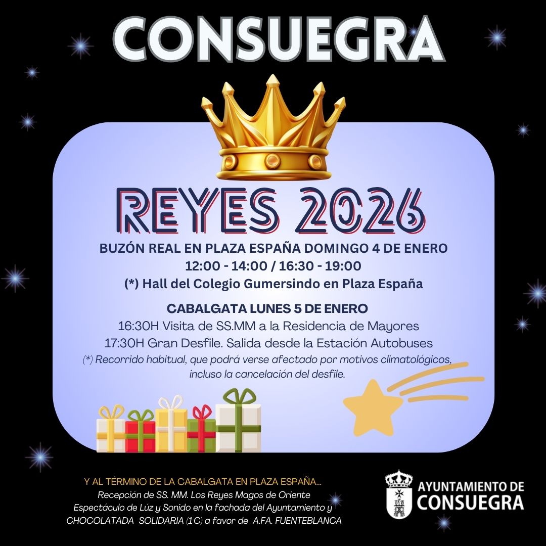 Sus Majestades los Reyes Magos de Oriente se aproximan a Consuegra. No olvides depositar tu carta en el Buzón Real, y disfrutar del gran desfile de Cabalgata Reyes 2026.