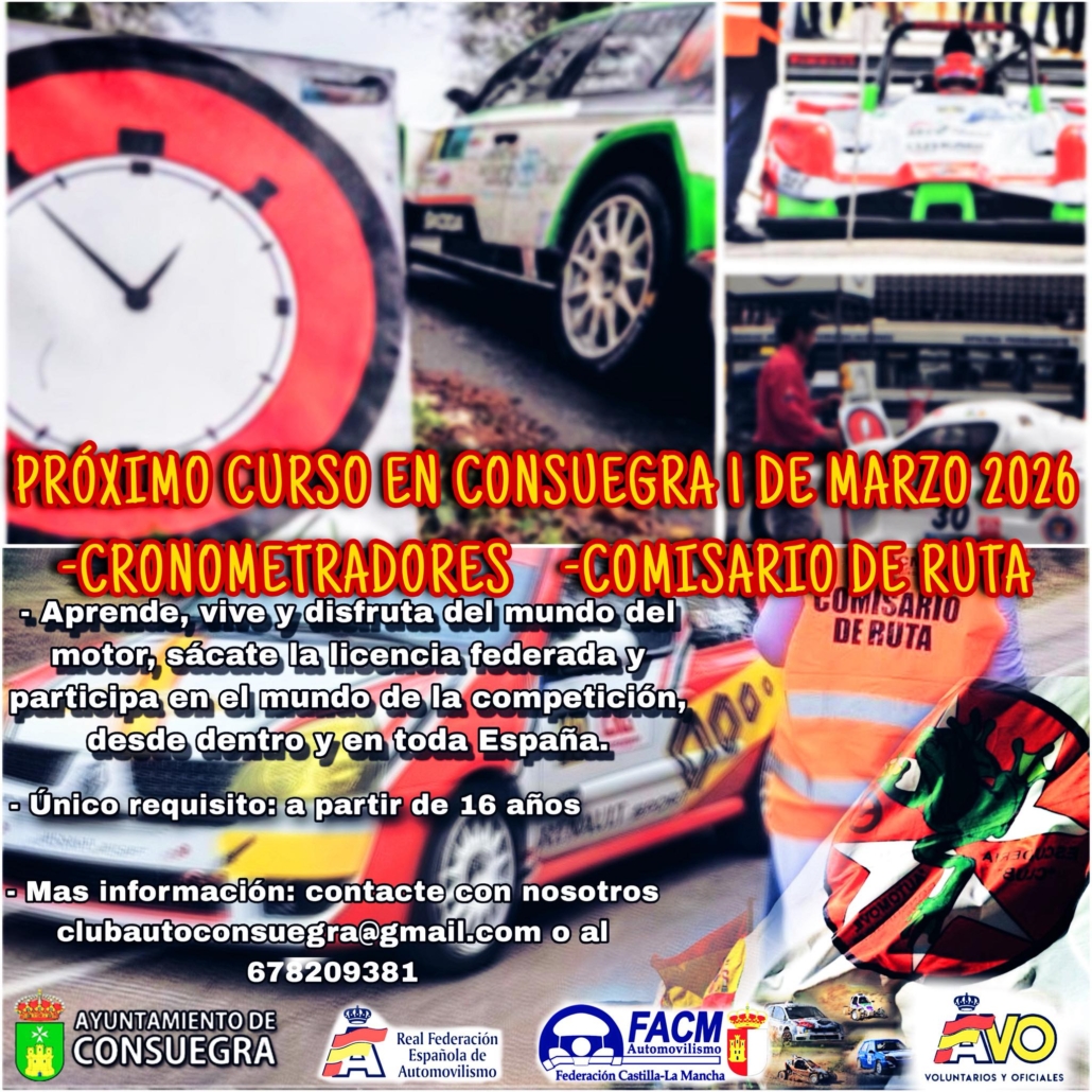 La Federación de Automovilismo de Castilla-La Mancha organiza el curso de Cronometrador y Comisario de Ruta, una formación dirigida a todas aquellas personas interesadas en colaborar de manera oficial en pruebas automovilísticas.