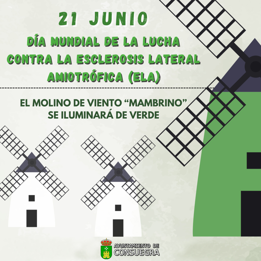 Día Mundial de la Lucha contra la ELA (#21junio). Iluminamos de verde al Molino «Mambrino»