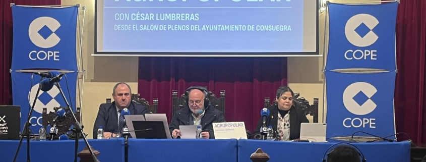 La alcaldesa de Consuegra, María Luisa Rodríguez, ha participado hoy en el programa “Agropopular” de la Cadena COPE, dirigido por el periodista César Lumbreras, en una emisión en la que también ha intervenido el consejero de Agricultura de Castilla-La Mancha, Julián Martínez Lizán, y en la que se ha abordado, entre otros asuntos, la reaparición de la Peste Porcina Africana (PPA) en España tras la detección de casos en jabalíes en Bellaterra (Barcelona).