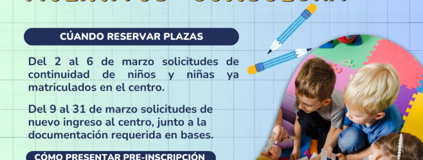 Escuela Infantil de Consuegra 2026/2027. Reserva de plazas.