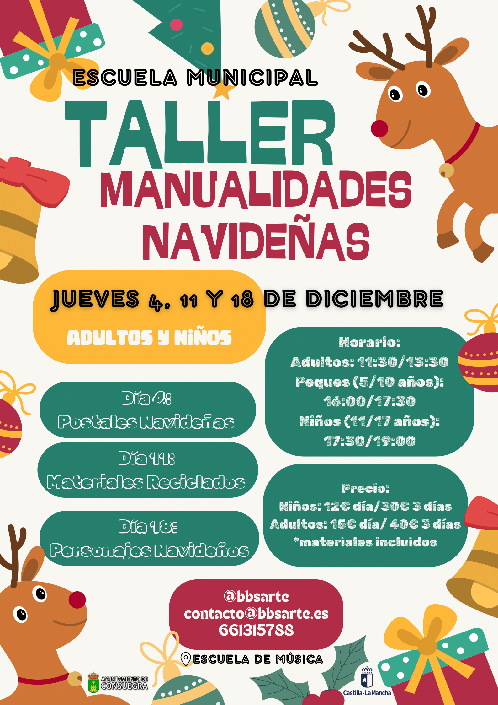 La Escuela Municipal de Pintura y Dibujo de Consuegra, con motivo de las próximas navidades, organiza el siguiente taller de manualidades.