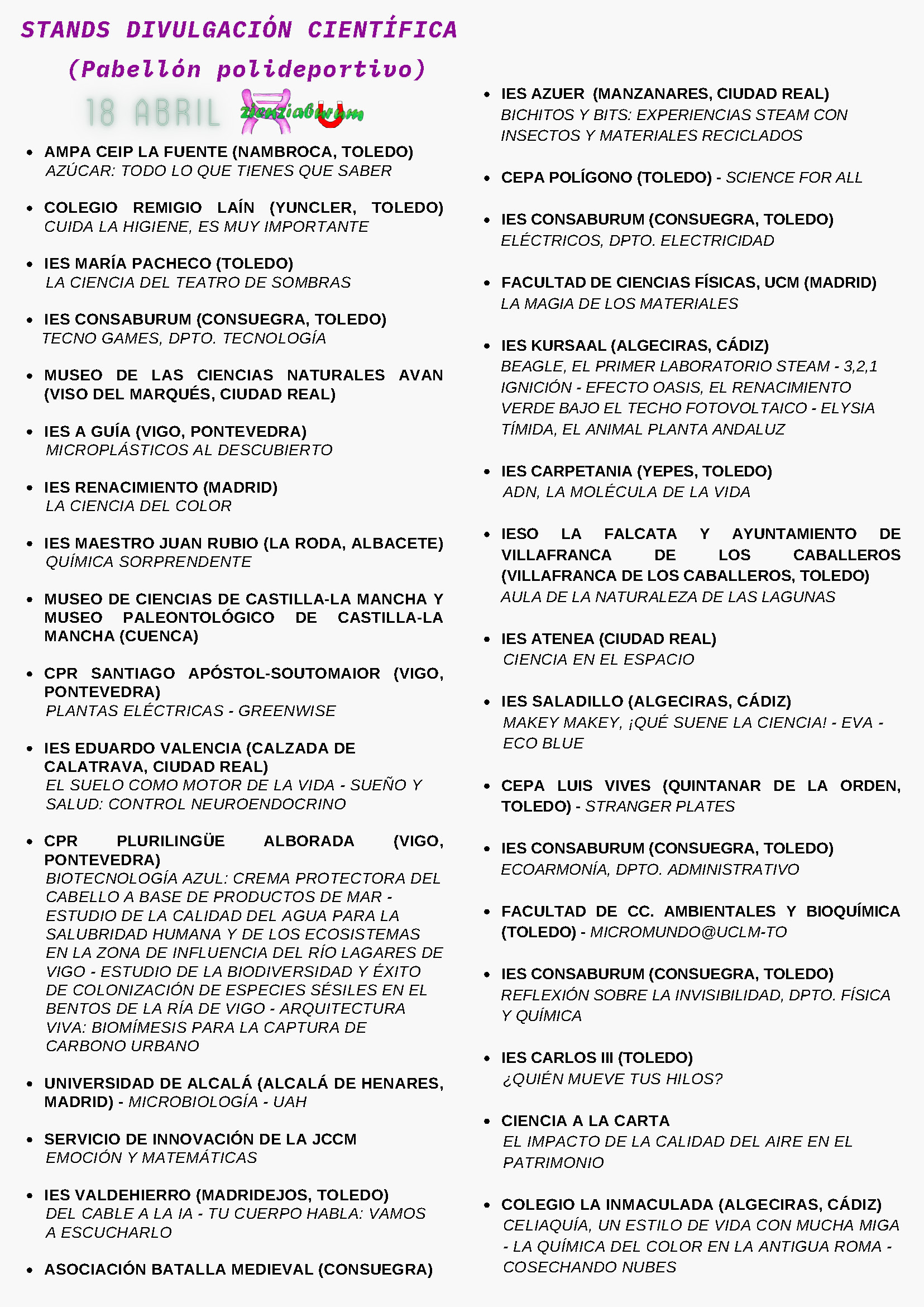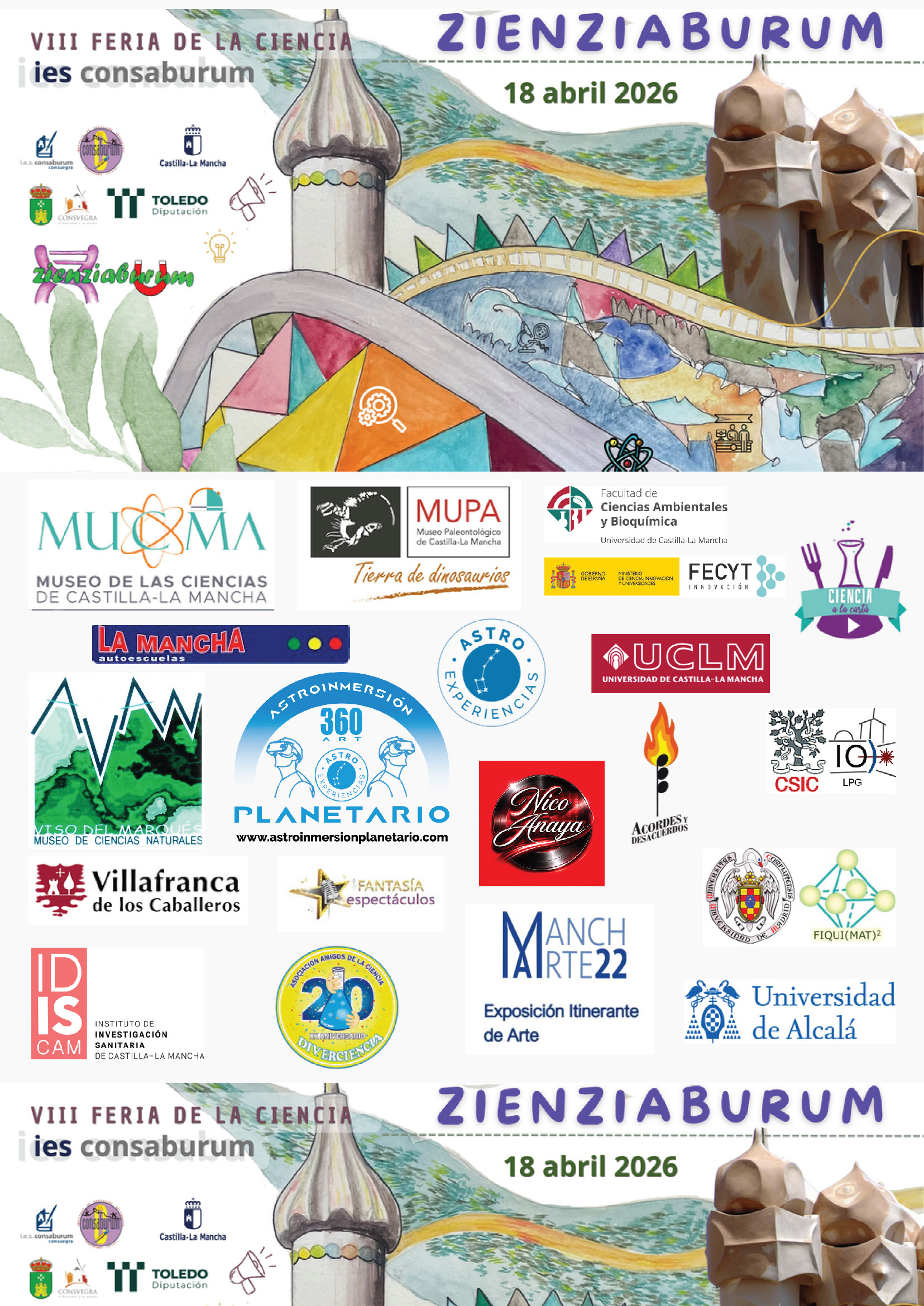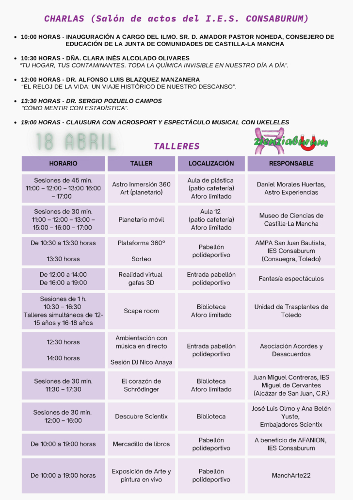 El sábado 18 de abril tendrá lugar en el IES Consaburum, tendrá lugar como viene siendo habitual en los últimos los, el magnífico evento Zienziaburum 2026, Feria de la Ciencia.