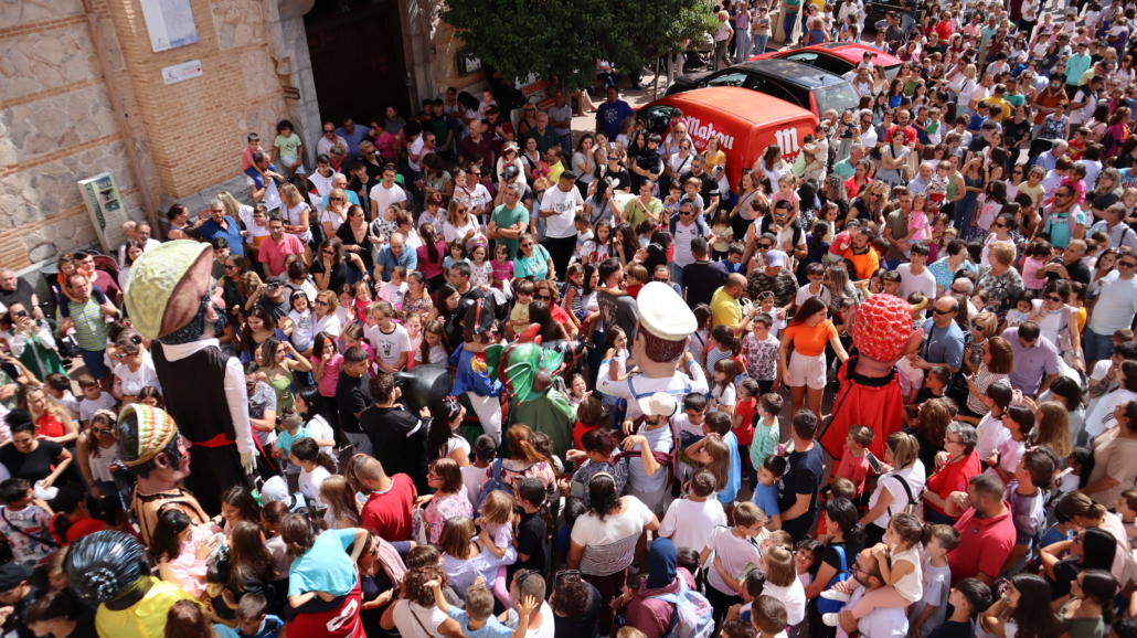 En la Plaza de España, reparto de golosinas y desfile de Gigantes y Cabezudos por las principales calles de la ciudad.