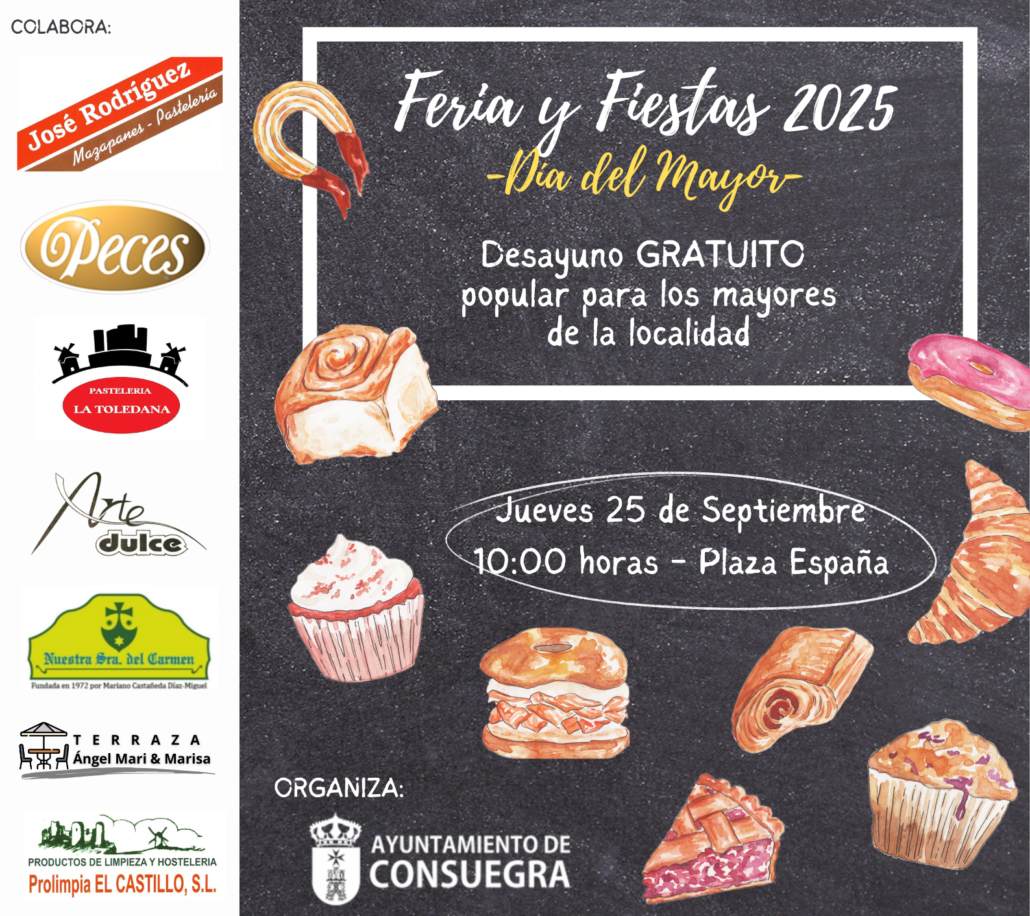 Colabora: Carnicería Esteban, Artesanos Lácteos S.L., Cooperativa vinícola “San Isidro Labrador”, Supermercado UNIDE y Merkocash