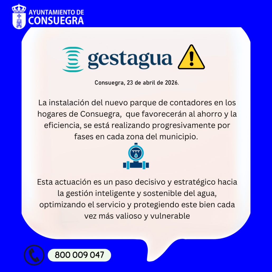 COMUNICADO GESTAGUA: Nuevo parque de contadores en Consuegra.