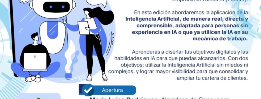 Aprenderás a diseñar tus objetivos digitales y las habilidades en IA para que puedas alcanzarlos. Con dos objetivos: utilizar la Inteligencia Artificial sin miedos ni complejos, y lograr mayor visibilidad para que consolidar y ampliar tu cartera de clientes.