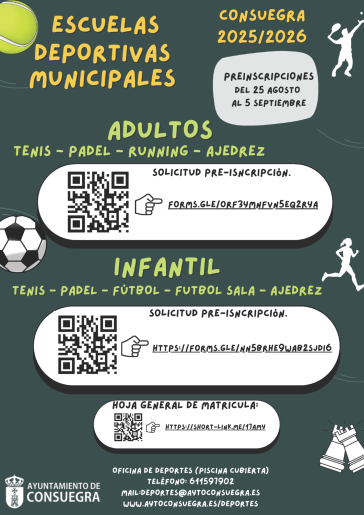Inscripciones en la Oficina Municipal de Deportes 678 404 727Formulario de inscripción https://forms.gle/adUC56n8e18XJcTu7