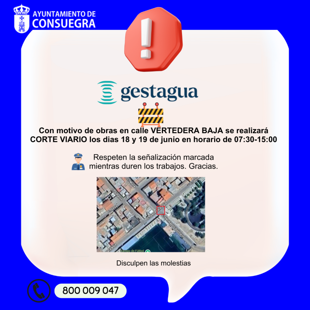 Aviso de corte viario en Vertedera Baja (18 y 19 de junio)