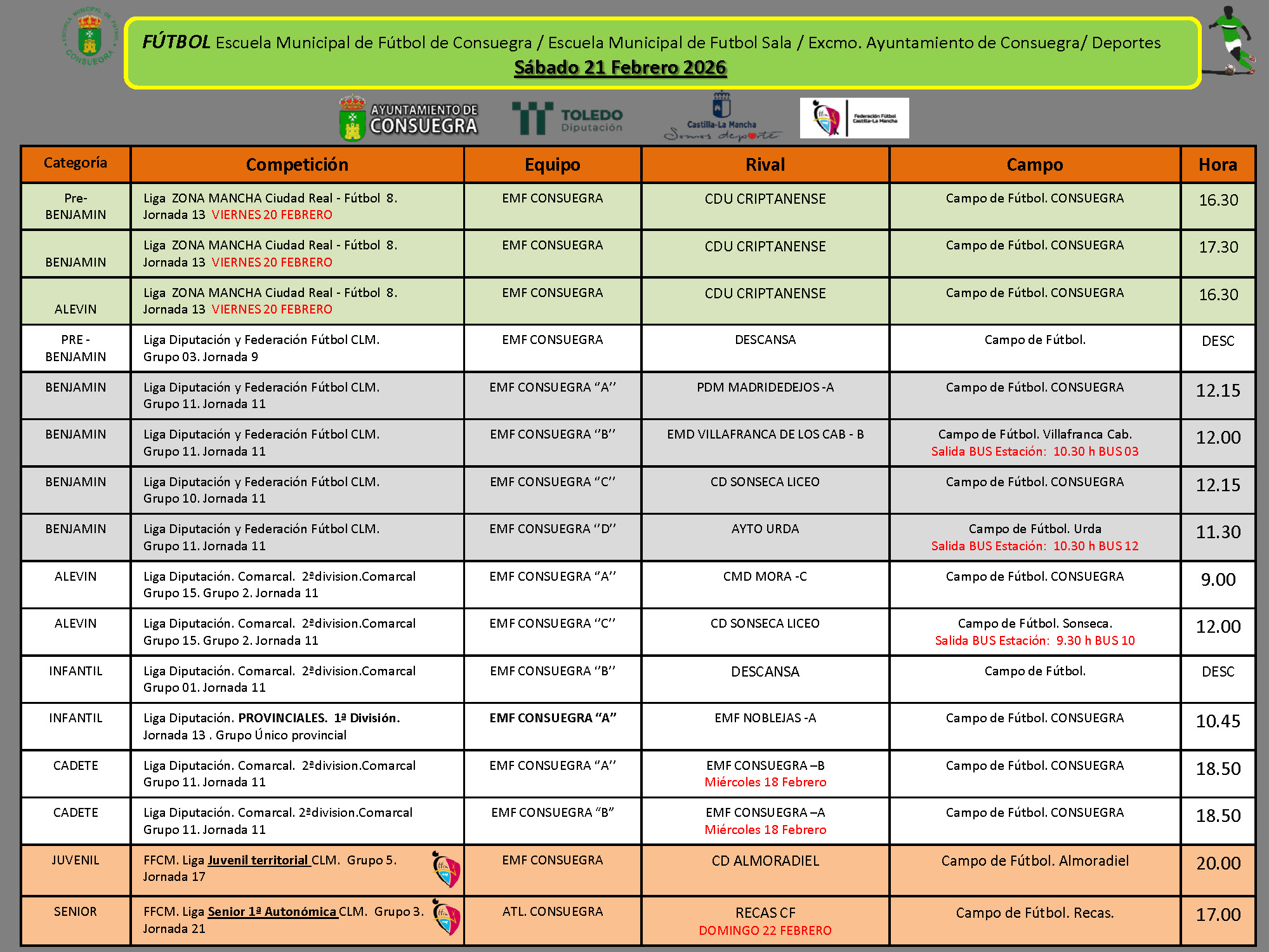 Programación deportiva de fin de semana. Temporada 2025/2026 Sábado 21 de febrero 2026