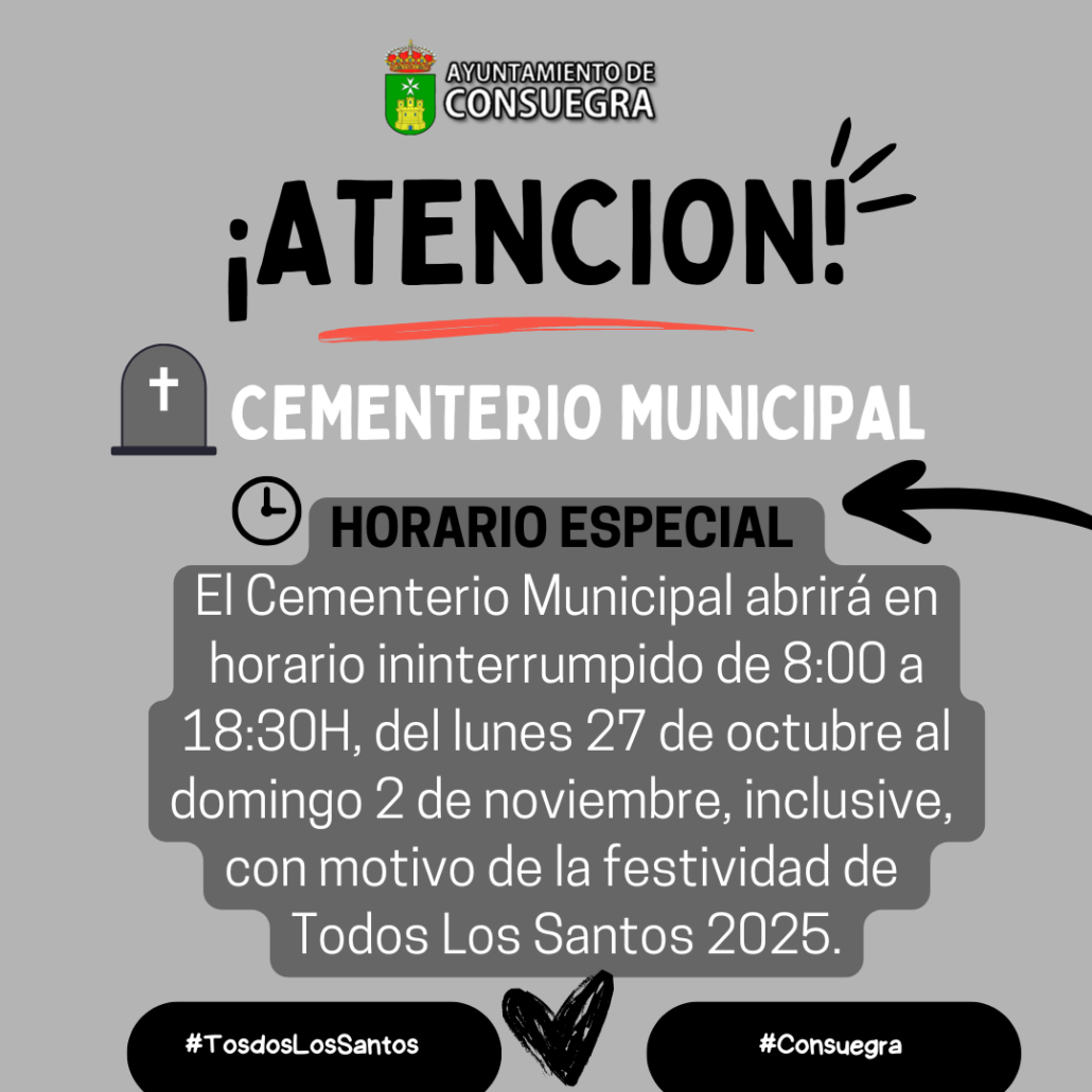 Festividad de Todos los Santos 2025. Horario Especial del Cementerio