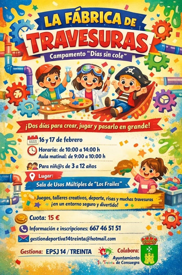 La Fábrica de las Travesuras 2026. Campamento «Días sin cole» (16 y 17 de febrero)